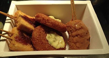 炸物有五種選擇:日式炸雞、可樂餅、帆立貝、和風炸豆腐、起司豬肉串